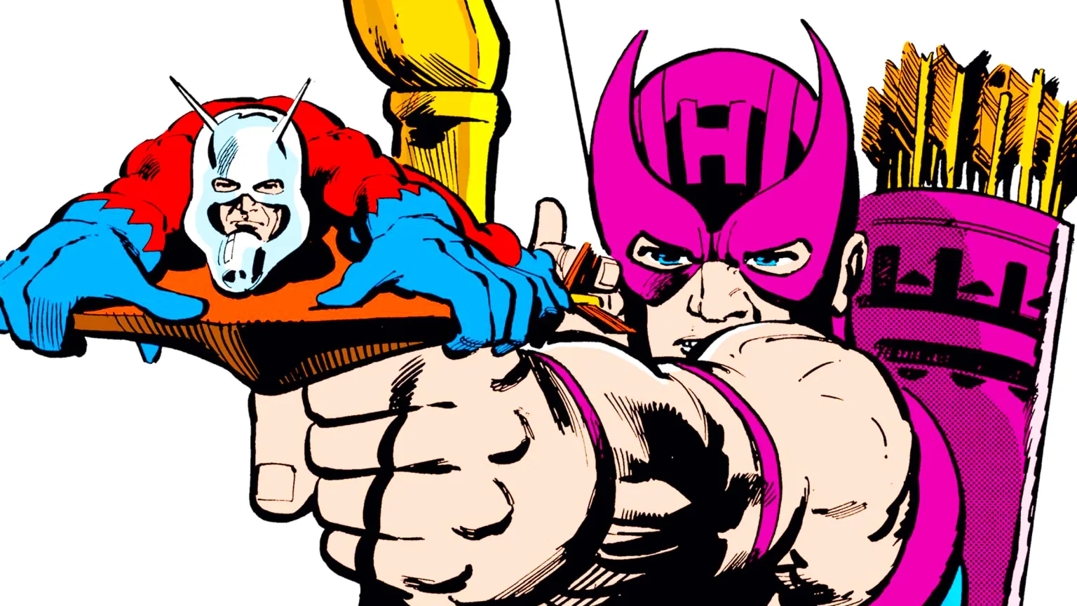 Nella scena di Captain America: Civil War, Hawkeye (Jeremy Renner) spara una freccia contro Ant-Man (Paul Rudd). Questo momento richiama direttamente la copertina di Avengers #223, pubblicato nel 1982, dove Scott Lang cavalca una freccia lanciata da Clint Barton. La scena non è solo un omaggio visivo ma diventa anche uno strumento strategico nel combattimento contro Iron Man.