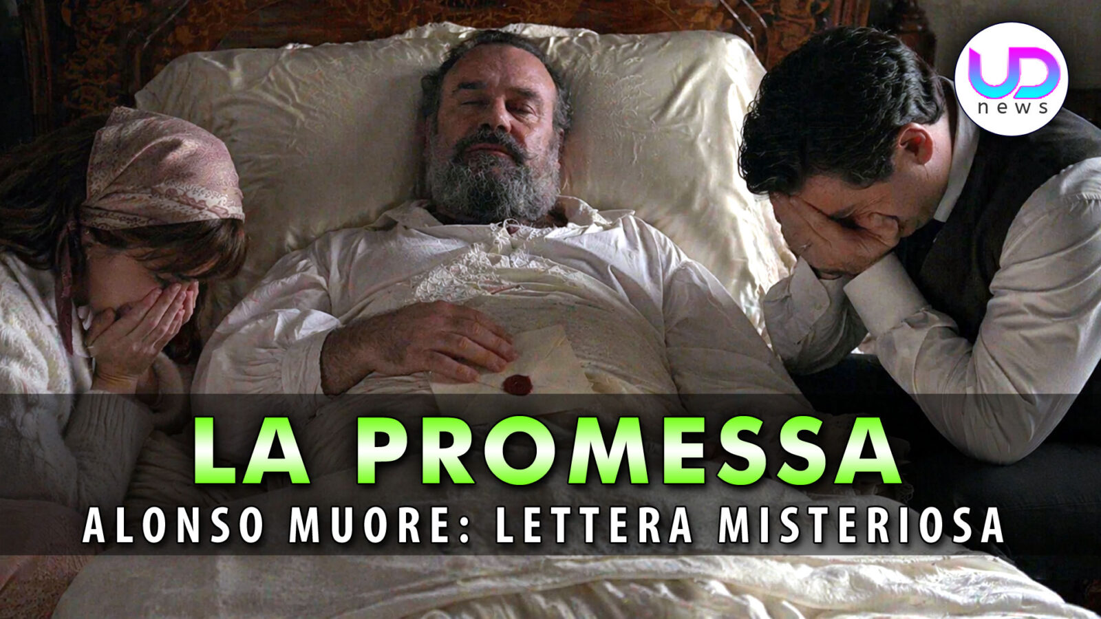 Quando Alonso muore, il silenzio diventa totale e il palazzo sembra perdere il proprio centro. La lettera scivola dalla sua mano e si posa sul lenzuolo con una leggerezza che contrasta con la forza che sembra portare con sé. Manuel la raccoglie con mani tremanti, ma non trova la forza di aprirla. Quel semplice passaggio, però, modifica la situazione: ormai nessuno può considerare il documento irrilevante.