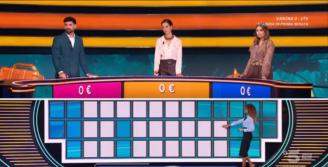 Al termine della fase degli indovinelli, Gerry Scotti ha aperto le tre buste della Ruota delle Meraviglie per rivelare i premi. L’ordine di apertura è risultato il seguente: