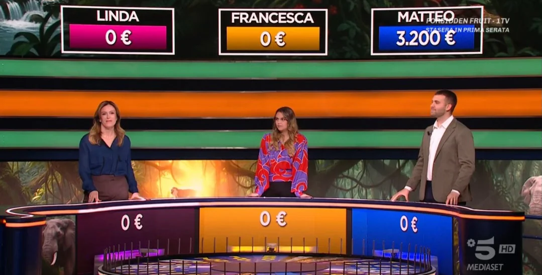 La prima busta conteneva 100 euro, la seconda racchiudeva 5.000 euro, mentre la terza busta, identificata da Matteo e contrassegnata dal colore verde, conteneva 100.000 euro. Combinando le vincite ottenute nel corso della puntata con l’apertura della Ruota delle Meraviglie, la somma complessiva ammonta a 114.300 euro.