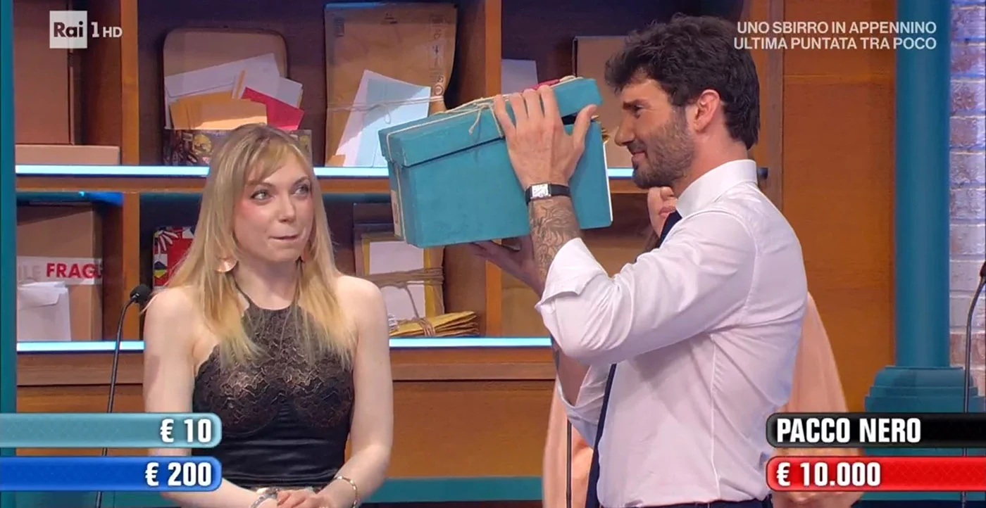 Subito dopo è comparso il pacco nero, che si è rivelato contenere ben 100 mila euro, trasformando la prospettiva della partita e portando il gioco verso una fase ad alto impatto.