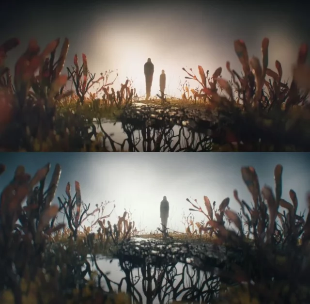 Il vero cambiamento emerge alla conclusione della sequenza introduttiva. Nelle prime due stagioni e nei primi due episodi, la telecamera si concentrava su una spirale composta da funghi che si apriva su due sagome lontane: queste silhouette erano chiaramente riconoscibili come Joel ed Ellie.